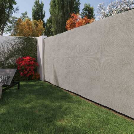 Ce brise-vue haut de gamme de coloris grège (Beige clair tirant sur le gris), avec un taux d’occultation de 100%, saura vous mettre à l'abri des regards indiscrets. Son très bon niveau d’occultation visuelle est un gage de qualité indéniable. Il se présente sous forme d’une toile tricotée imputrescible en polyéthylène haute densité avec maille bloquée anti-effilochage et traitée anti UV pour une très bonne résistance dans le temps, au vent et au soleil. Facile à mettre en place et rapide à l'aide d'agrafes brise vue, vous pouvez fixer le brise-vue facilement sur clôture, grillage, portail, terrasse ou balcon. De quoi s'adapter à votre projet !